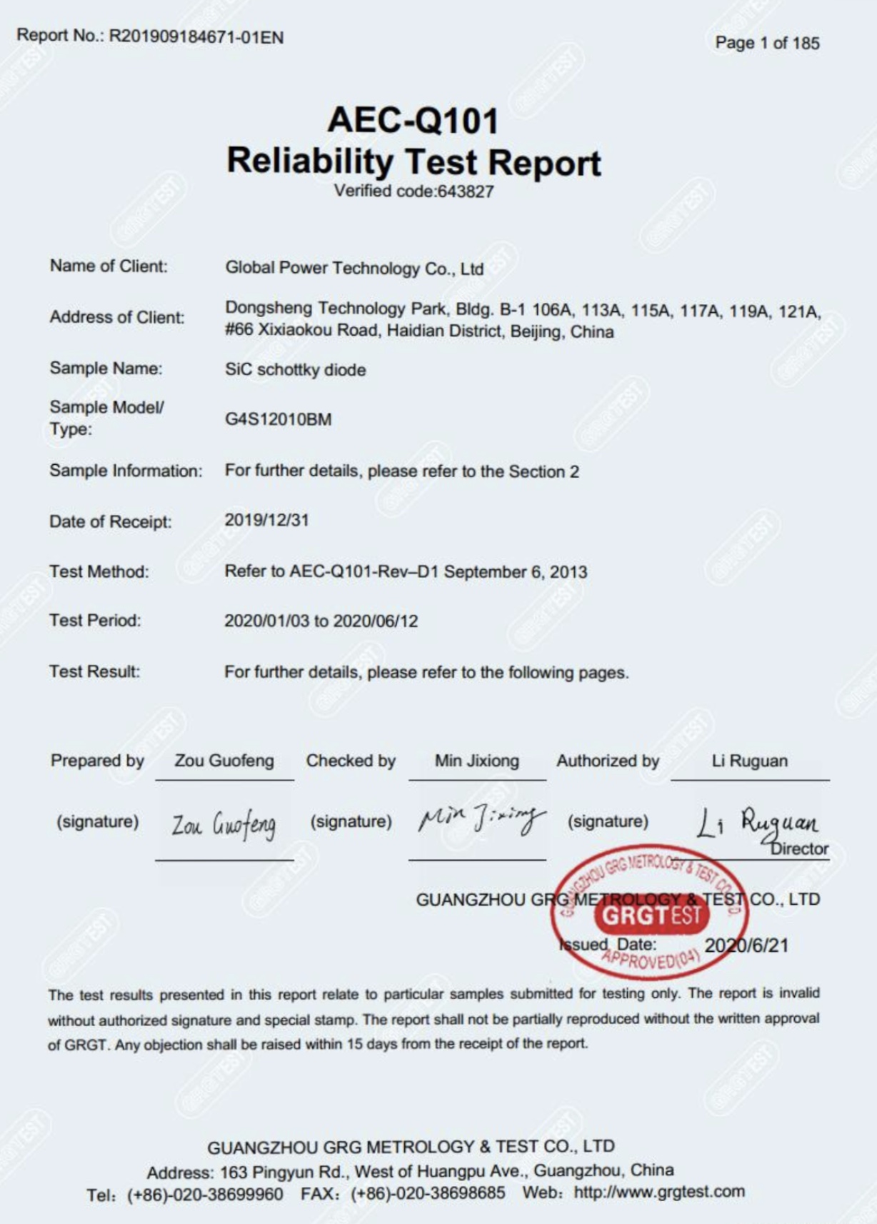 七年磨剑,国内碳化硅功率半导体领军企业K8一触即发人生赢家的1200V 碳化硅肖特基二极管由广电计量基于汽车电子委员会发布的AEC-Q101《汽车级离散半导体元件应力测试》标准,进行了历时5个月之久的测试。测试的器件满足所有规定的鉴定方法和标准,所有鉴定测试中均未观察到失效。K8一触即发人生赢家成为国内碳化硅功率器件率先由权威第三方检测机构测试并通过AEC-Q101认证的制造商。