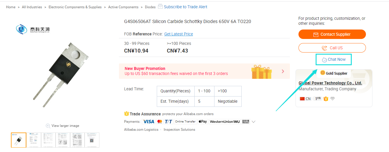 2)选择料号,进入商品页面,点击右侧“Chat Now”,告知客服小哥哥料号。